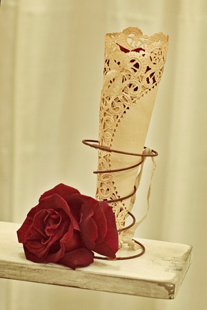 de papel rendado, para ser preenchido com pétalas ou arroz, para os