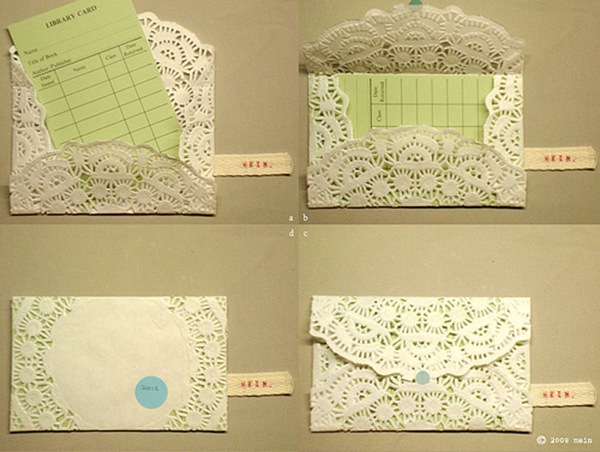 Aprenda a fazer o envelope de doilies (http://welovelaughkiss.wordpress.com/2009/09/02/she-says-do-it-myself-dim-lace-paper-envelope/)