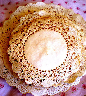 conhecidos como doilies, em português, acho que é "papel para bandeja"