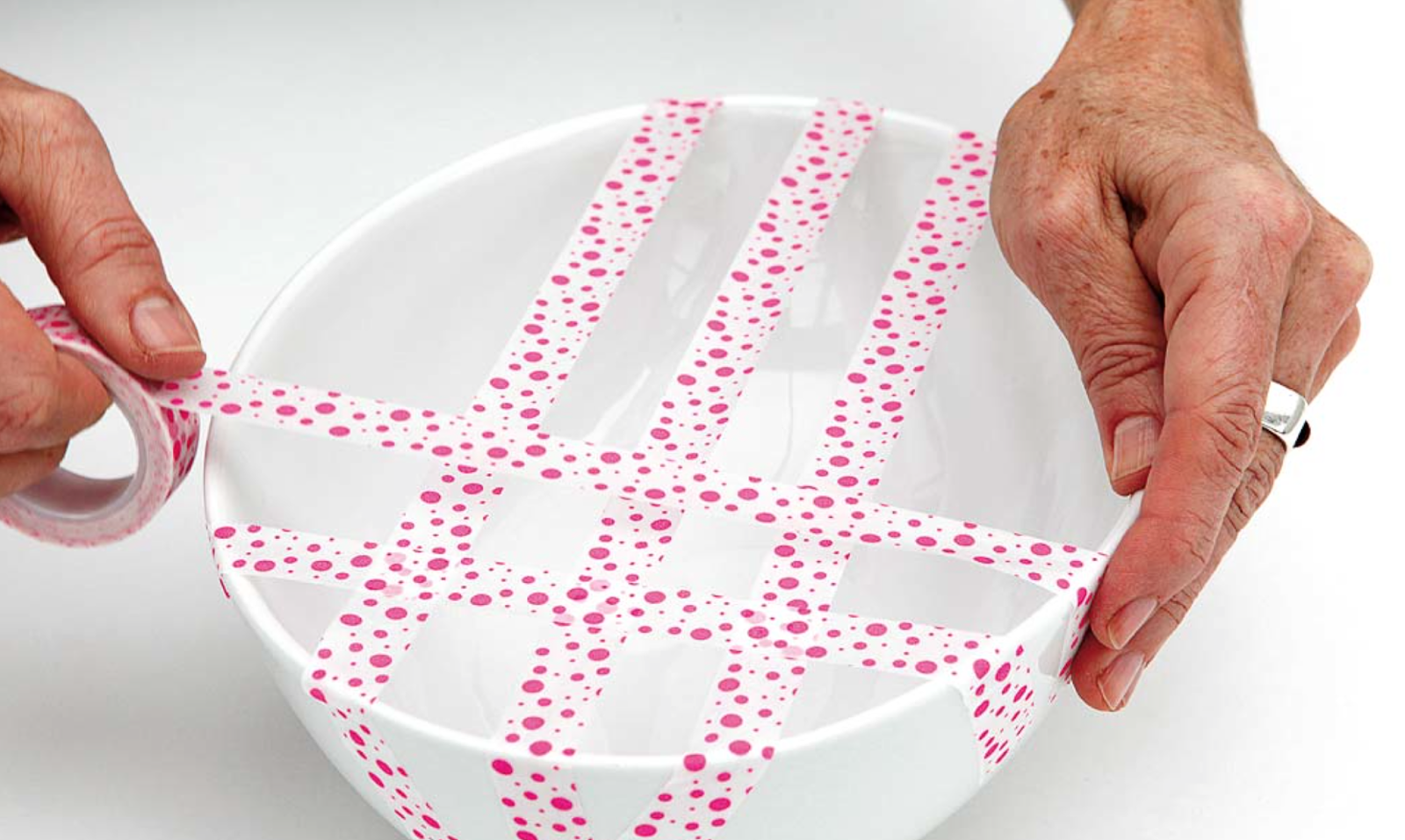 • (3) Separe o recipiente que vai usar. Nessa hora, criatividade conta bastante! Claro que usar um vaso normal é o mais fácil, mas preste atenção em potes de geléia, garrafas etc. Também é legal combinar com pratos, xícaras e outras louças bonitas que você tenha em casa. Nat colocou um prato em cima do vaso, a estampa de listras deu um acabamento bem legal!
